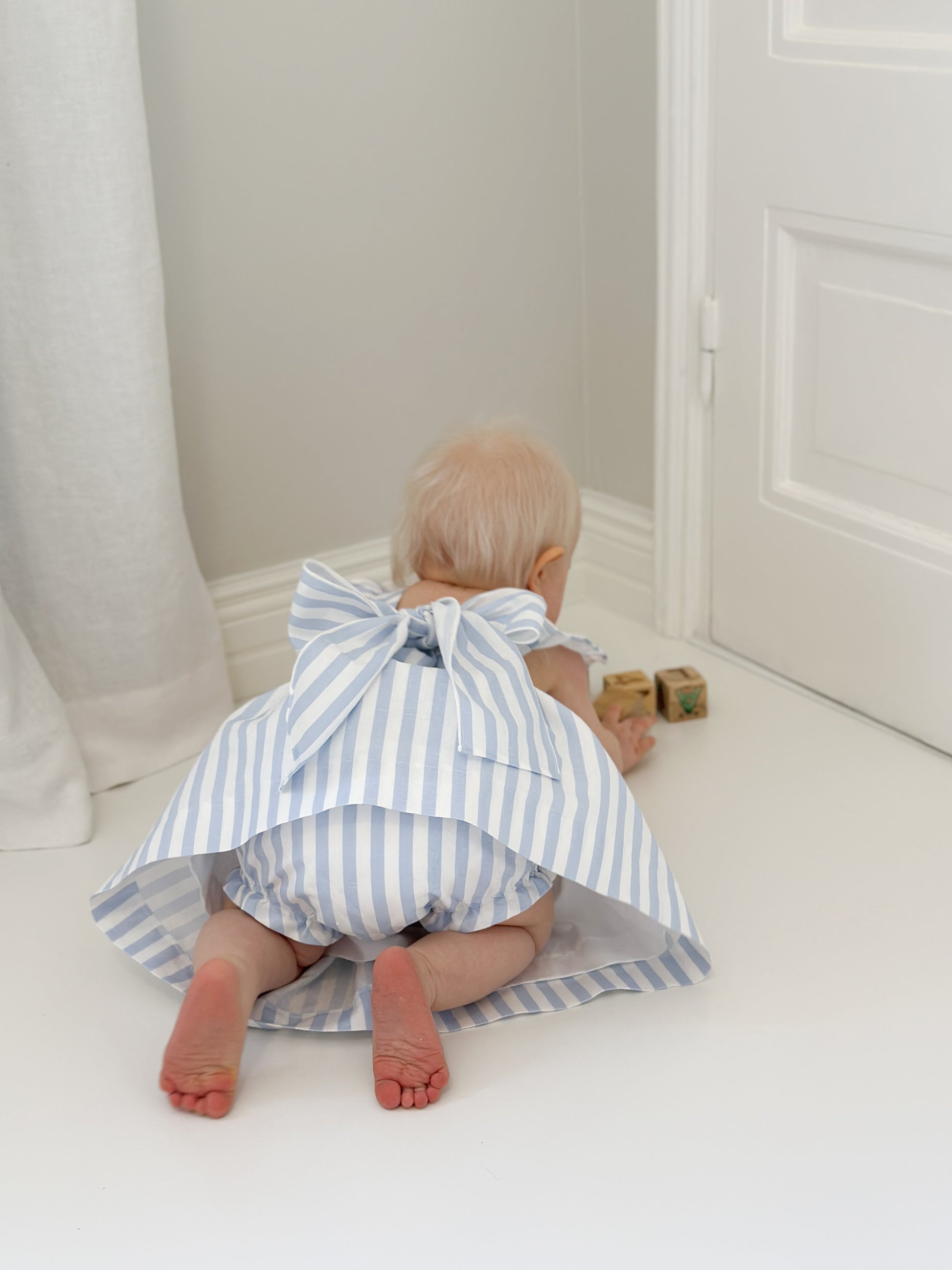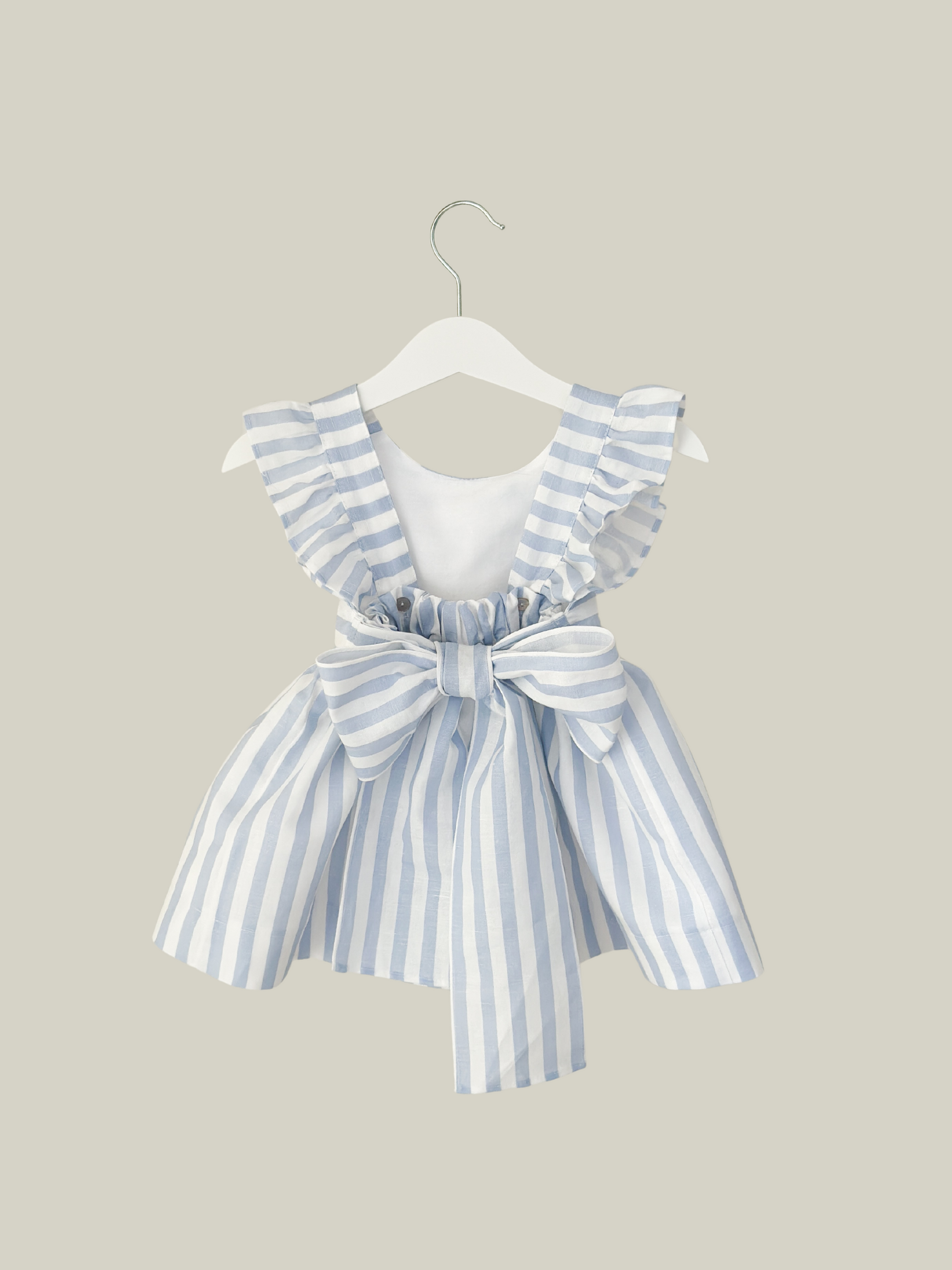 Dulci Bow Dress in striped blue fabric